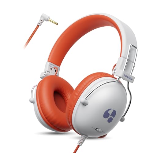 awatrue Kids Headphones Wired, Childrens Earphones for ages 3-12, 74/85db Safe Volume Limit, 3.5mm jack, Foldable Toddler Headphones for Girls/Boys/Chromebooks/School/Travel/Tablet/Kindle-WhiteOrange