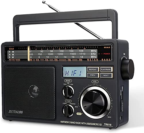 Retekess TR618 Portable FM AM SW Radio, Digital Shortwave Radio, Mains and Battery, Vintage Transistor, Antenna, Headphones Jack USB TF, Site, Work, Bathroom, Kitchen, Outdoor (Black)
