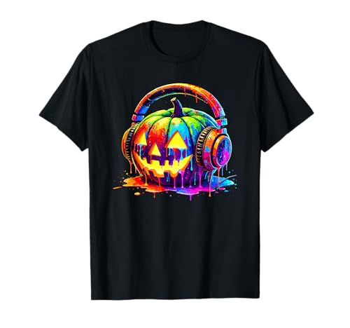 Splash Art Pumpkin Halloween Jack-o'-Lantern Headphones T-Shirt
