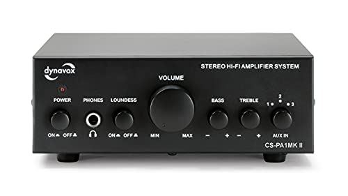 Dynavox CS-PA1 MK II Mini Stereo Amplifier, Bass and Tweeter Sound Control 3.5mm Jack Connector for Headphones - Black