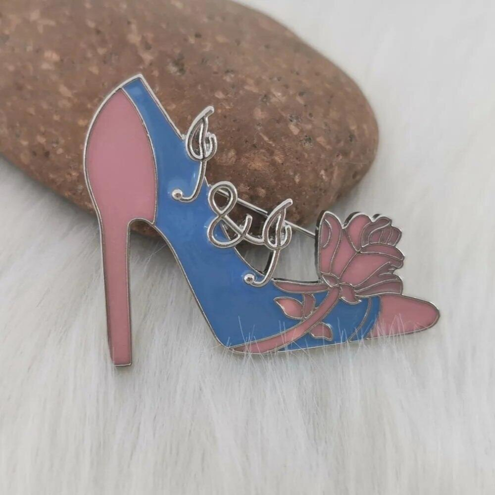 Jack & Jill and Pink Rose Flower High-Heeled Shoes Brooch Jewelry
