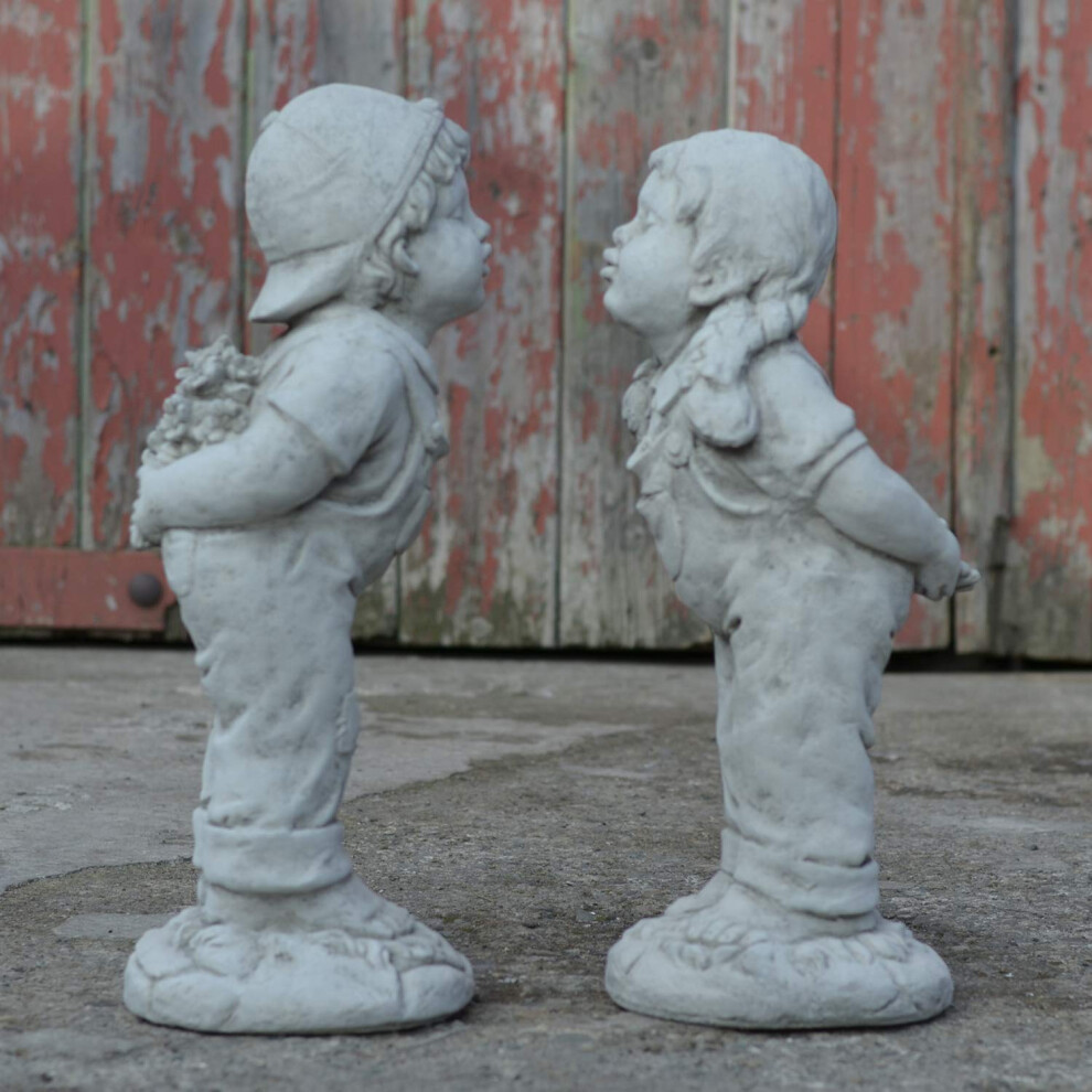 ONEFOLD Kissing Boy & Girl Statues, Jack and Jill Hand Cast Stone Ornament for Garden, Outdoor Garden Sculpture, Durable and Weatherproof