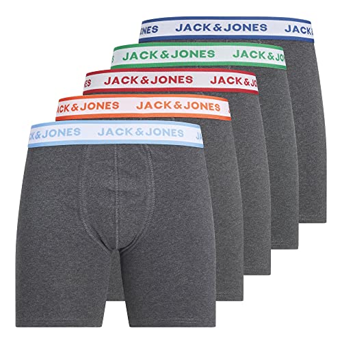 JACK & JONES Men's Jacmilo Boxer Briefs Pack of 5 Shorts, Dark Grey Melange/Pack: dgm-dgm-dgm-dgm, M