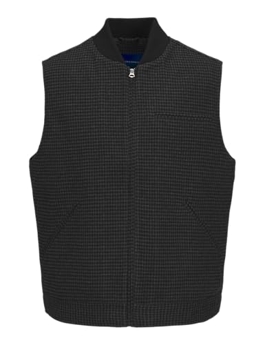 JACK & JONES Men's Joreaton Wool Worker Gilet Vest, Black/detail: checks, XL