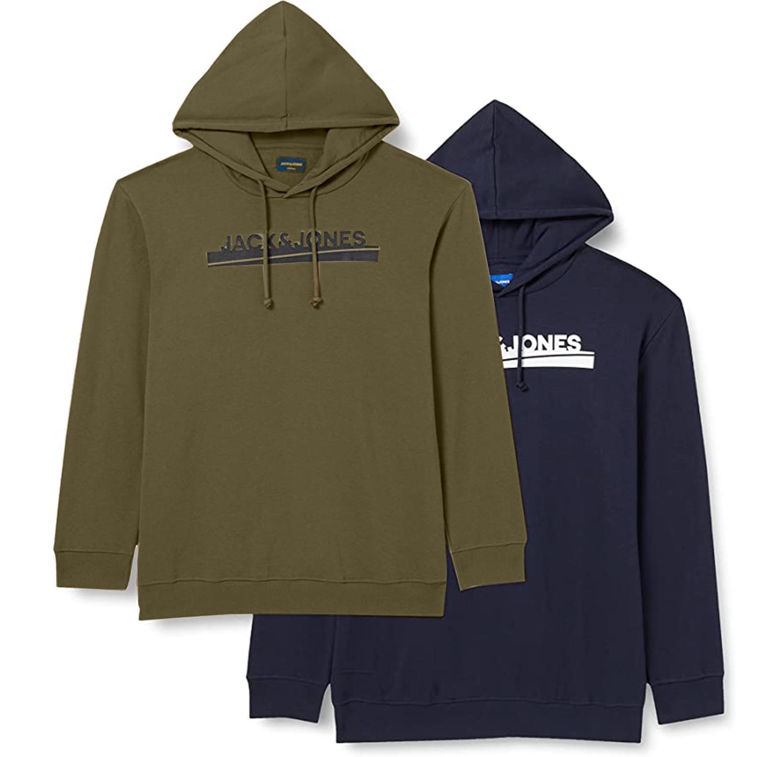 Jack & Jones Mens Pullover Sweatshirt Multipack, Hooded, Printed Logo, 2PK, L