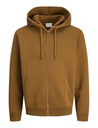 JACK & JONES JJEBRADLEY Regular Fit Hooded Jacket Hoodie with Zip Plain Zip Pullover Sweater, coriander, L