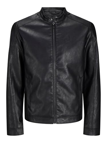 JACK&JONES JPRCCWALLACE Men's Leather Jacket, Black, M, black, M