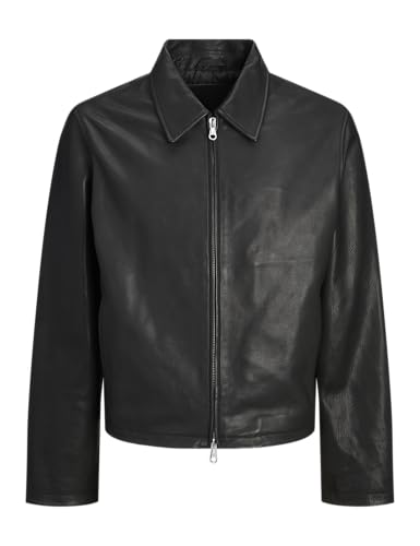 JACK & JONES Men's Jjerichard Leather Jacket Noos Leather Jacket, black, XS
