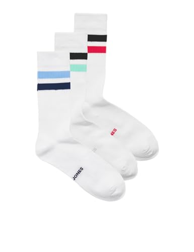 JACK & JONES Men's Jactirana Tennis Socks 3 Pack, White, One Size (Pack of 3)