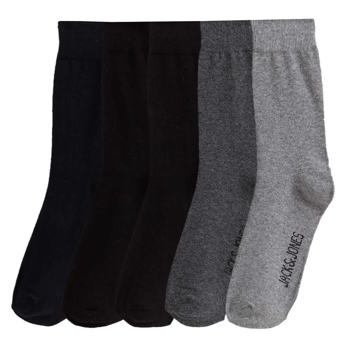 JACK & JONES Mens 5 pack Jens Dress Socks Grey/navy/black 7-12
