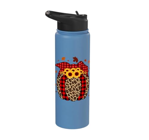 Jack O Lantern Leopard Plaid Pumpkin Lantern Halloween Stainless Steel Insulated Water Bottle
