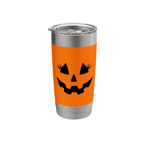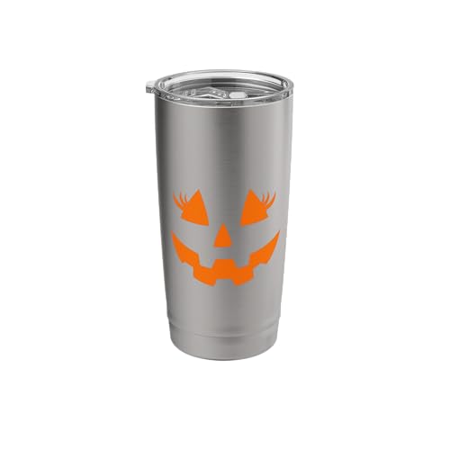 Cute Jack O Lantern Face Halloween Pumpkin with Eyelashes Stainless Steel Insulated Tumbler