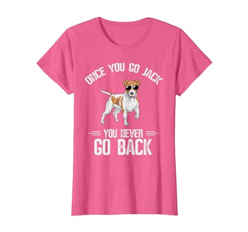 Once You Go Jack You Never Go Back Jack Russell Terrier T-Shirt, Women, Pink Heather, Medium