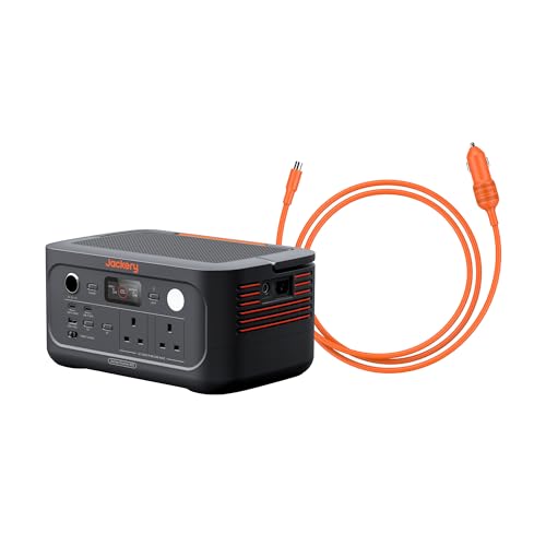 Jackery Explorer 500 v2+ Car Charger Cable Portable Power Station, 230V/500W Pure Sine Wave Solar Generator, 500W AC Output Power Station, 512Wh LiFePO4 Lithium Camping Battery Backup for Picnic
