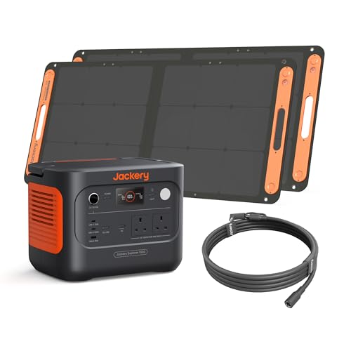 Jackery Explorer 1000V2 Portable Power Station (2024 New) + 2x 100W Solar Panels + 5M Extension Cable, 1070Wh LiFePO4, 1500W AC & 100W USB-C Output, 1-Hour Fast Charge