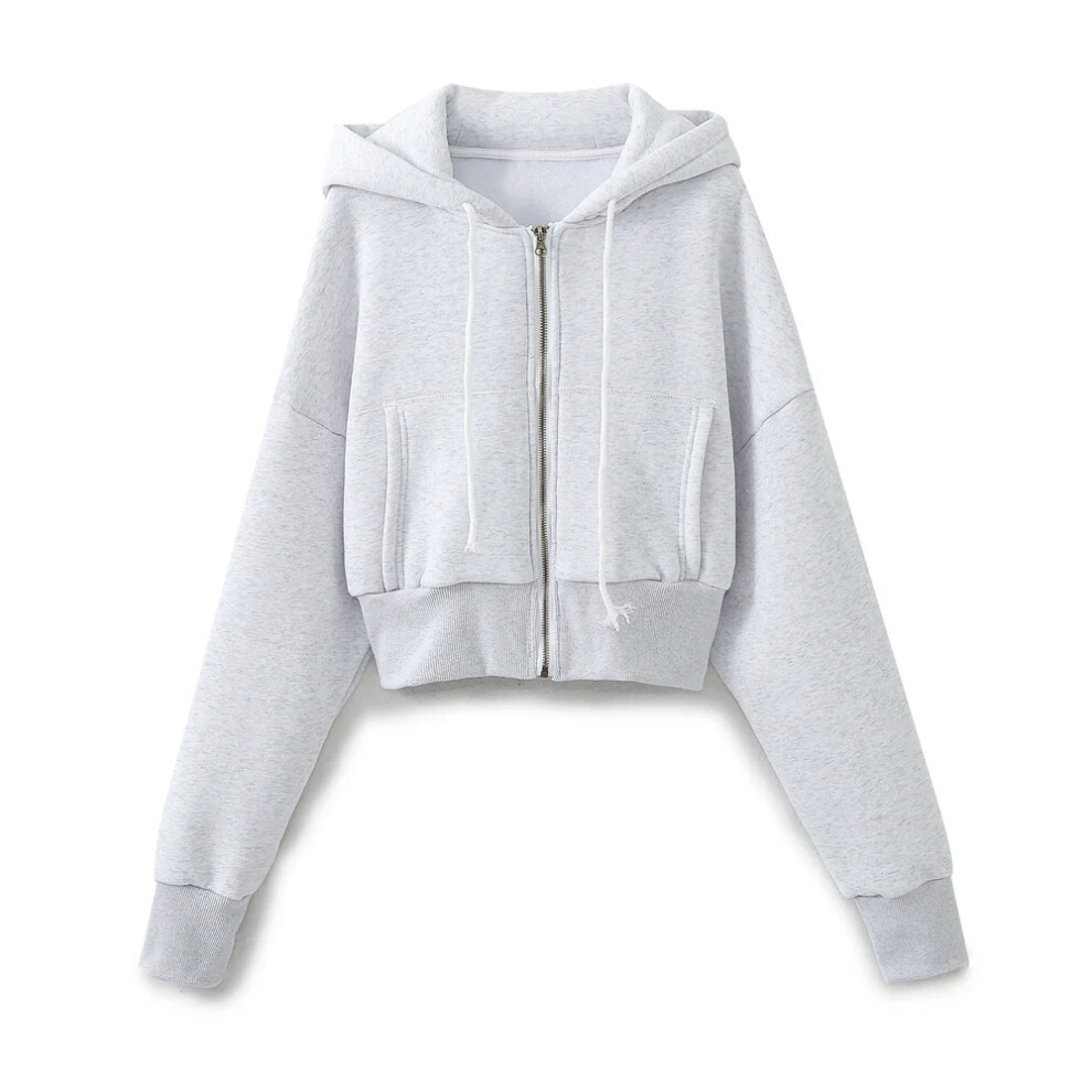 (grey top, S) HH Women Solid Pant Sets Zipper Long Sleeve Coat Bomber Jacket + Drawstring High Waist Trousers Fashion Streetwear Suit