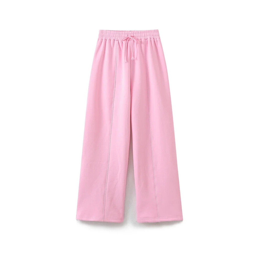 (002 pink coat, M) HH Women Solid Pant Sets Zipper Long Sleeve Coat Bomber Jacket + Drawstring High Waist Trousers Fashion Streetwear Suit