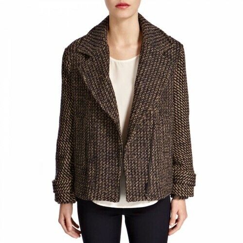 FRENCH CONNECTION Navy/Camel Triumph Tweed Biker Jacket Size 16 DH009 HH 08