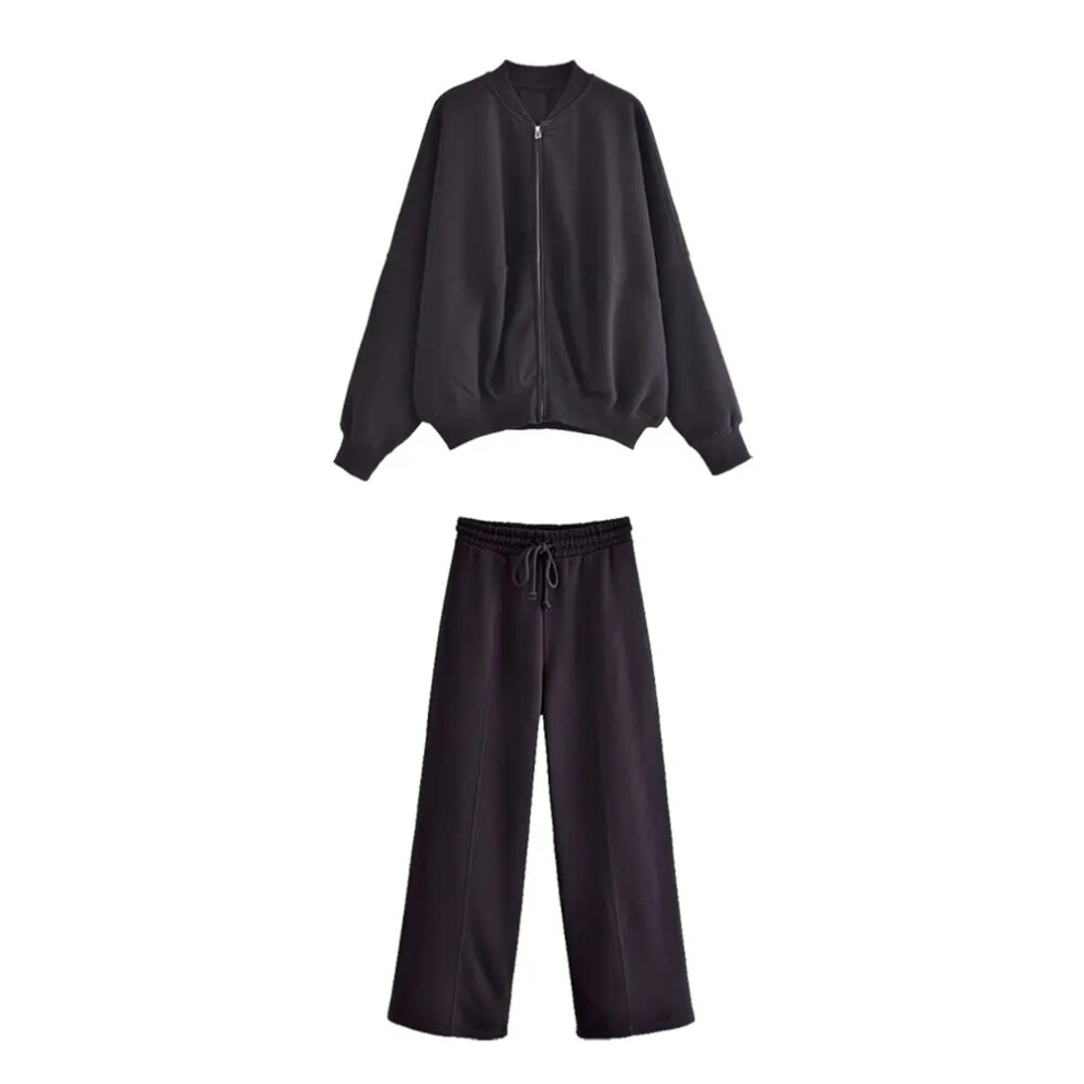 (black suit, M) HH Women Solid Pant Sets Zipper Long Sleeve Coat Bomber Jacket + Drawstring High Waist Trousers Fashion Streetwear Suit