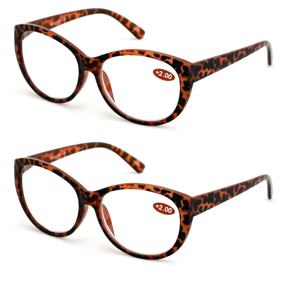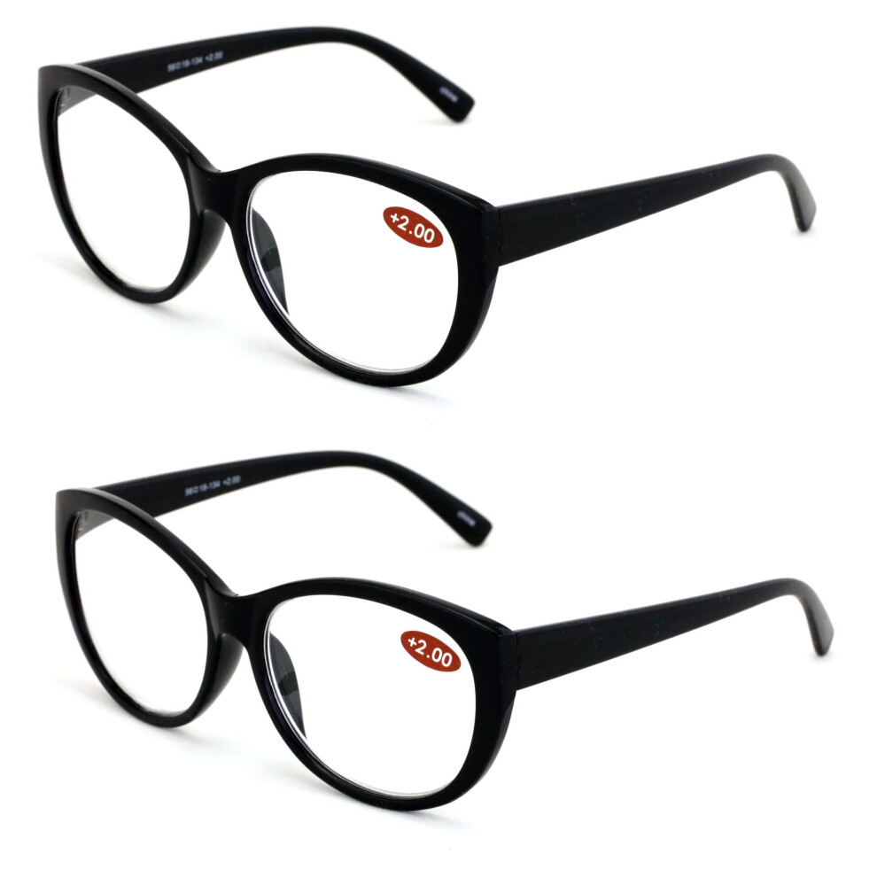 V.W.E. 2 Pairs Women Black Tortoise Reading Glasses Reader Glasses Cateye Vintage Jackie O Black Brown