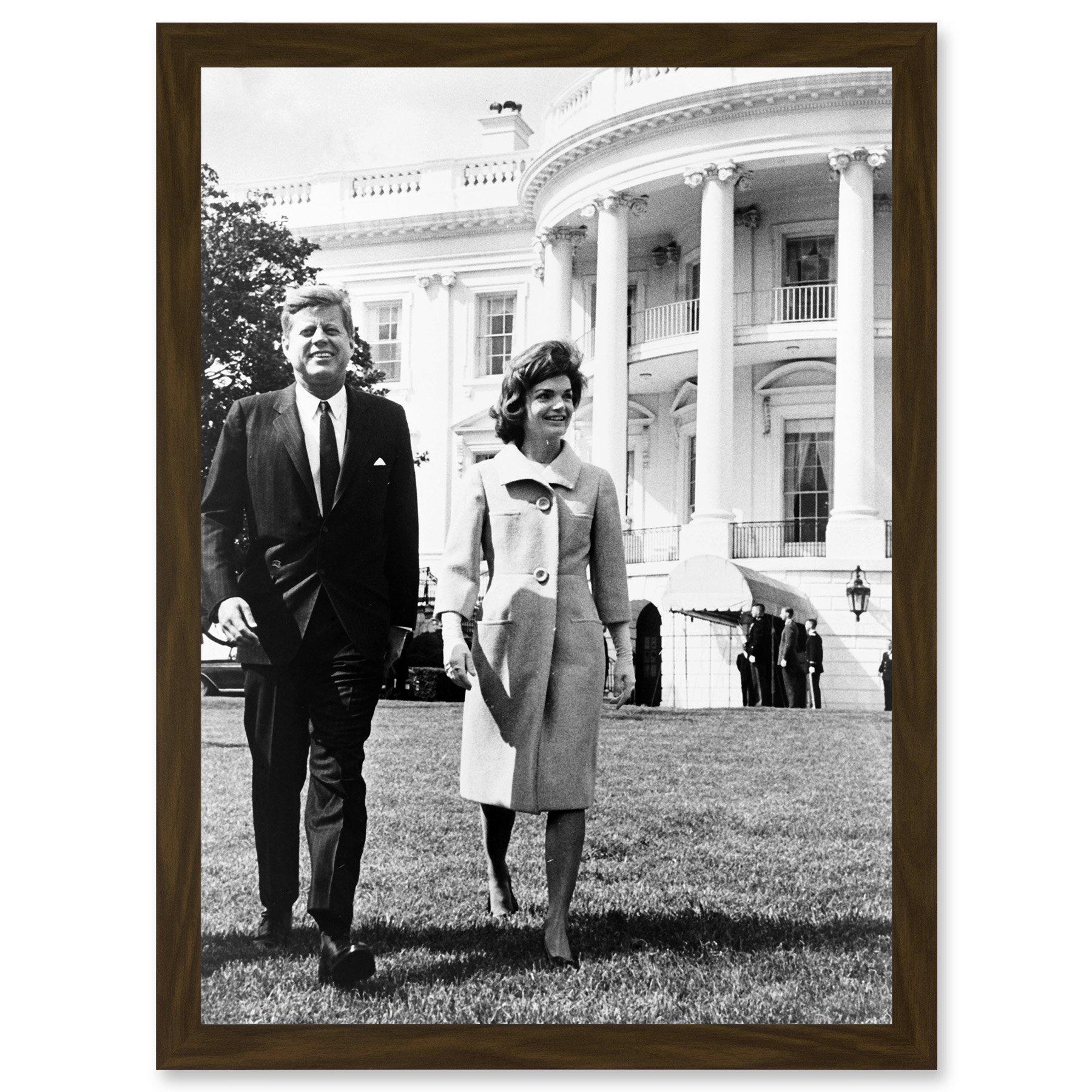 Photo President USA John Jackie Kennedy JFK White House Lawn Artwork Framed Wall Art Print A4