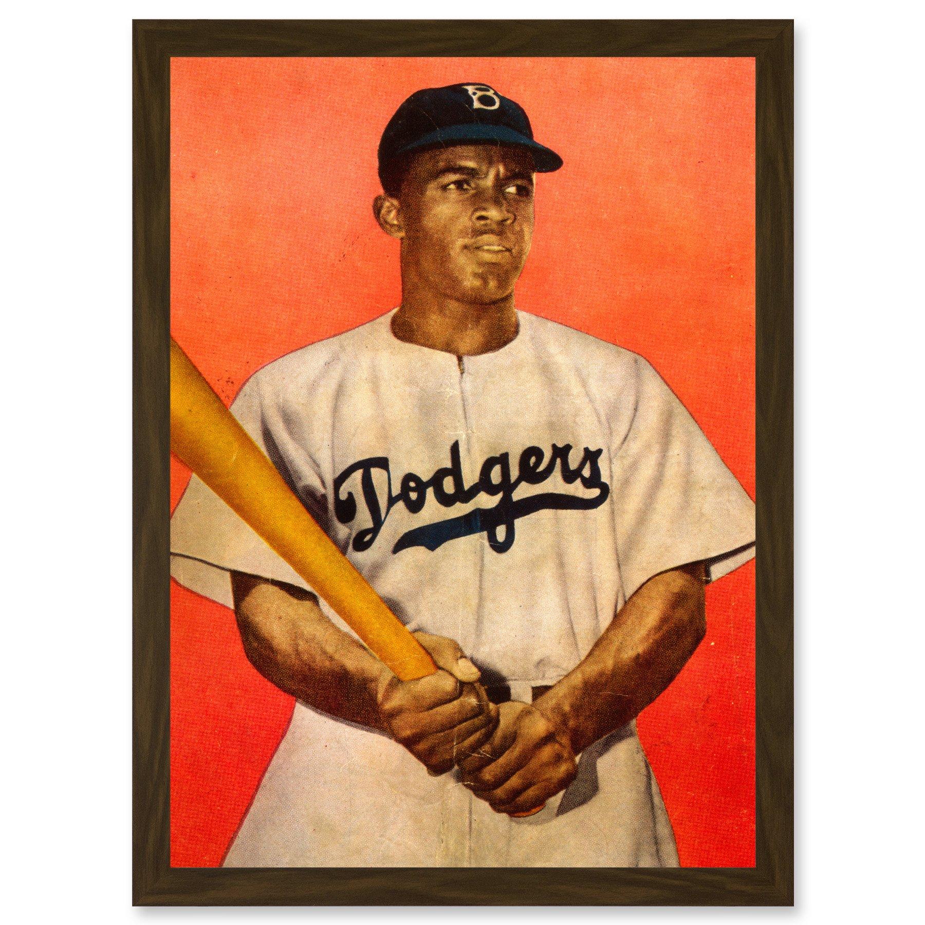 Portrait Jackie Robinson Baseball Brooklyn Dodgers A4 Artwork Framed Wall Art Print