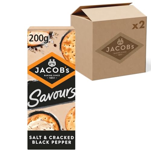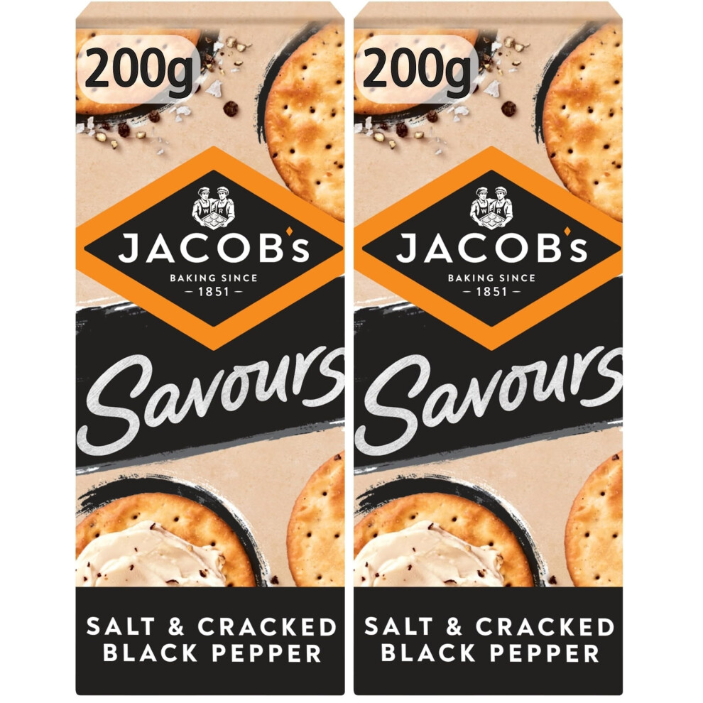 JACOB'S Savours Bakes Salt and Cracked Black Peppers Crackers, 200 g (Pack of 2)