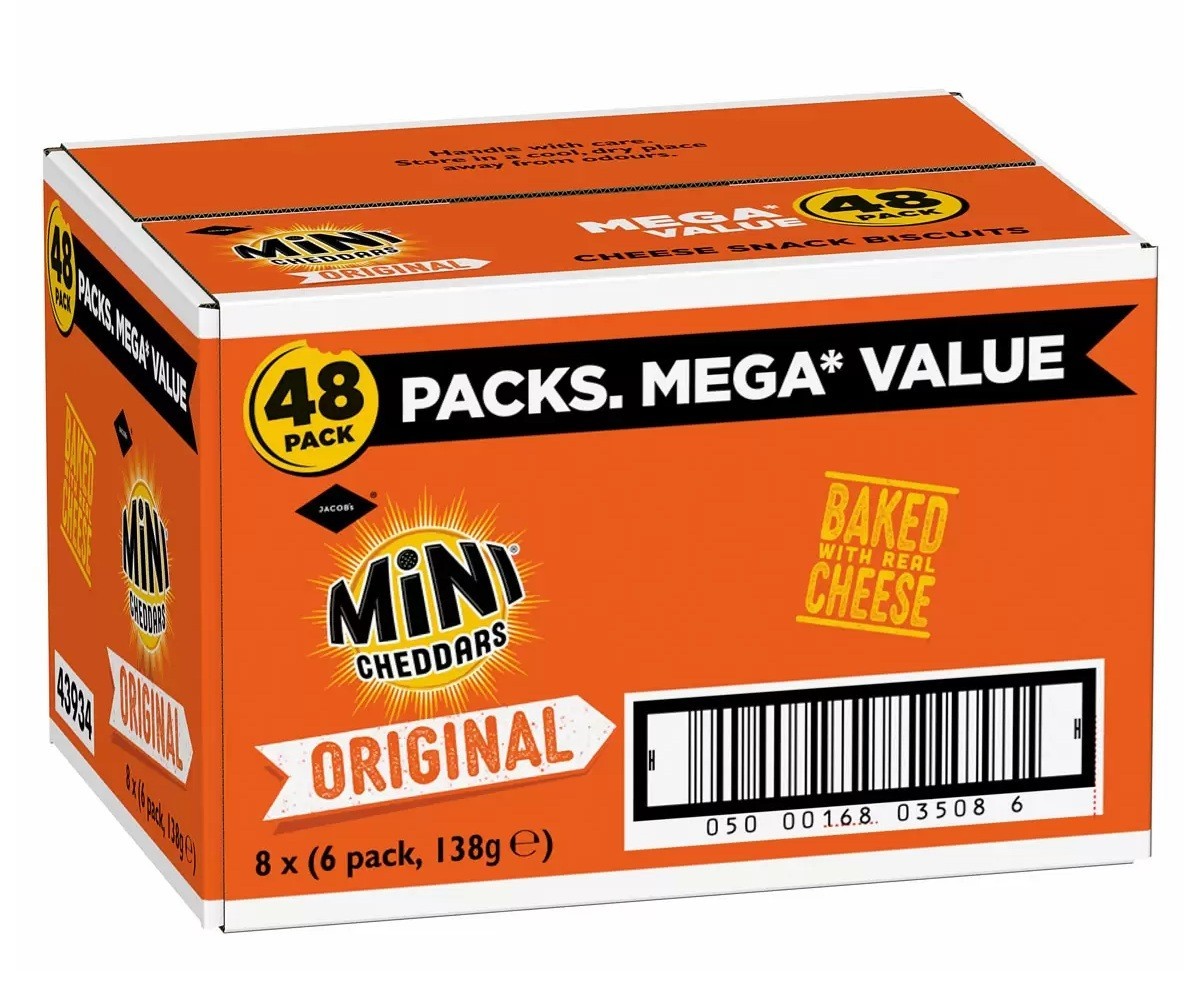 Jacob's Mini Cheddars 48 X 25g Cheese Biscuits , Savoury Snack Crackers