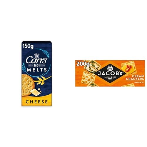 JACOB'S x Carr's Crackers Store Cupboard Staple Bundle - 1 x Jacob's Original Cream Cracker (200 g) & Carr's Melts Cheese Crackers (150 g)
