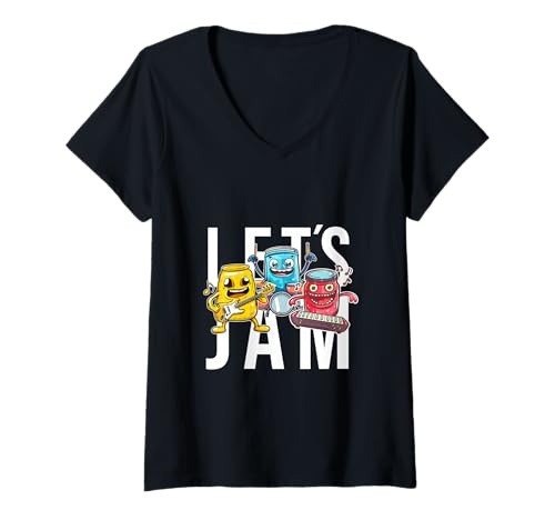 Women's Let’s Jam Funny Jam Jar V-Neck T-Shirt