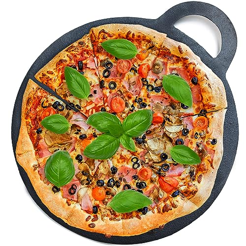 Andrew James 30cm Pizza Stone | Large Cast Iron Baking Stone | Ideal for Scones, Pizza and Bread | Oven Use for Baking | Non-Stick Heavy Duty | Traditional Cast Iron Hot Plate