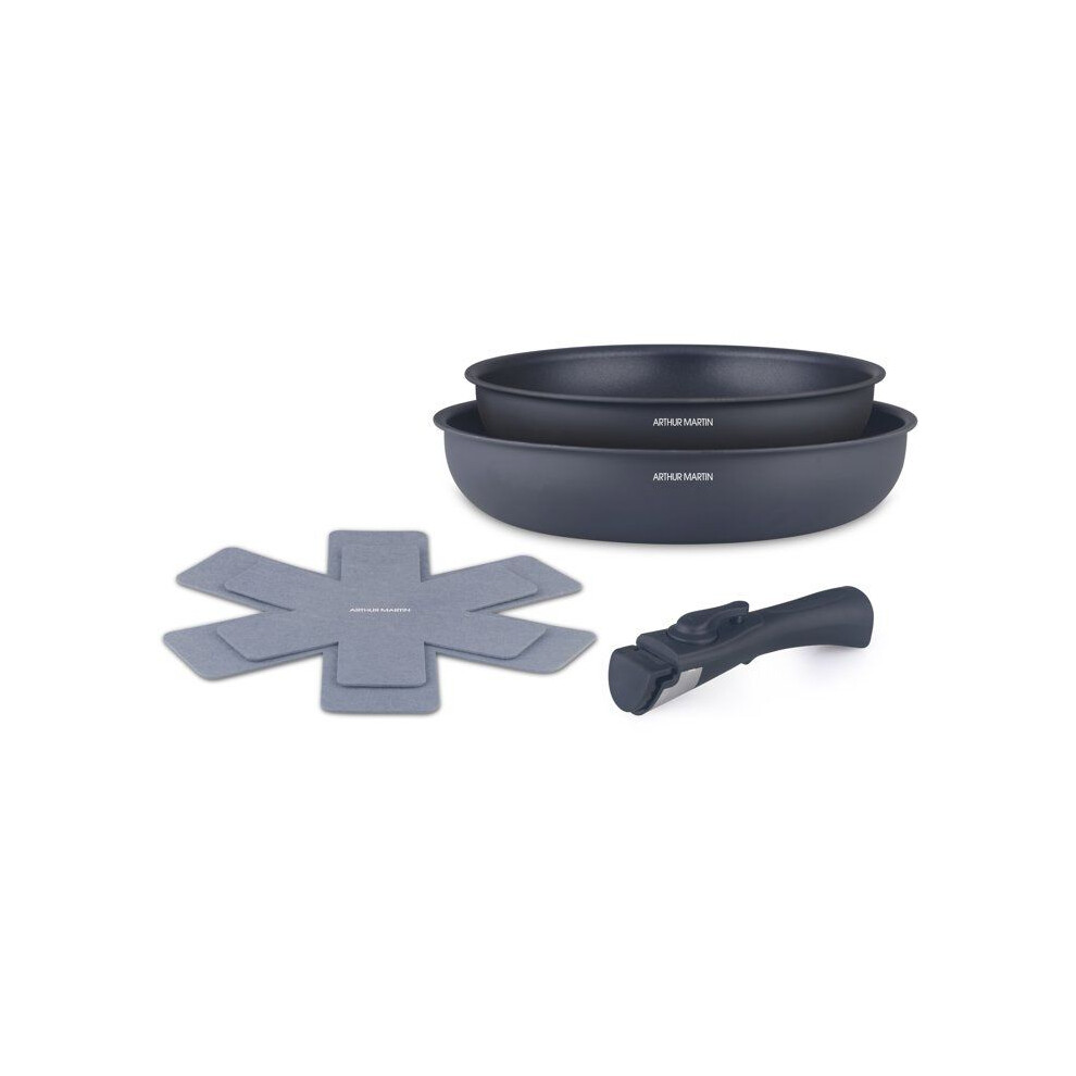Set of 2 frying pans - Suitable for all hobs including induction - ARTHUR MARTIN - AM2977 - Non-stick - Ã 24-28 cm + Removable handle - Matte gray