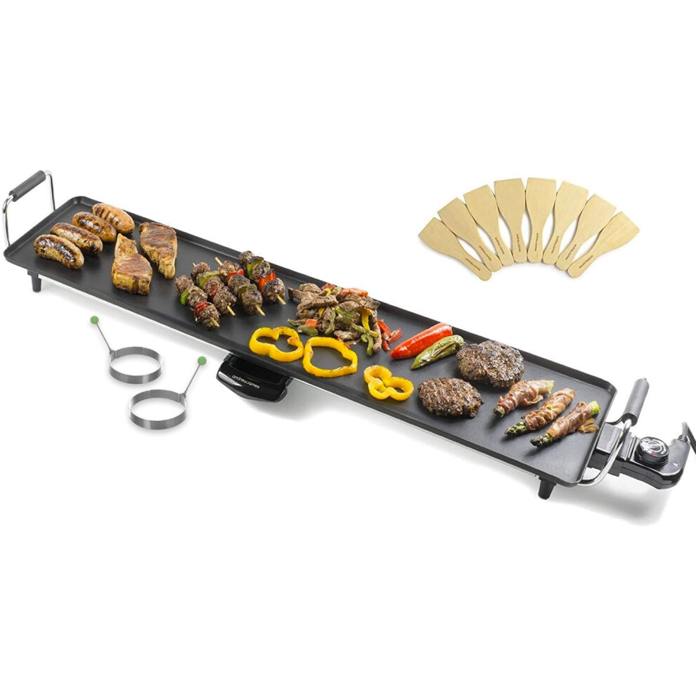 Andrew James Teppanyaki Electric Grill Plate & 2 Egg Rings | Large Non-Stick Tabletop Griddle with 43cm x 22.5cm Hot Plate & Adjustable Temperature | Includes 8 Wooden Spatula & Recipes in Manual