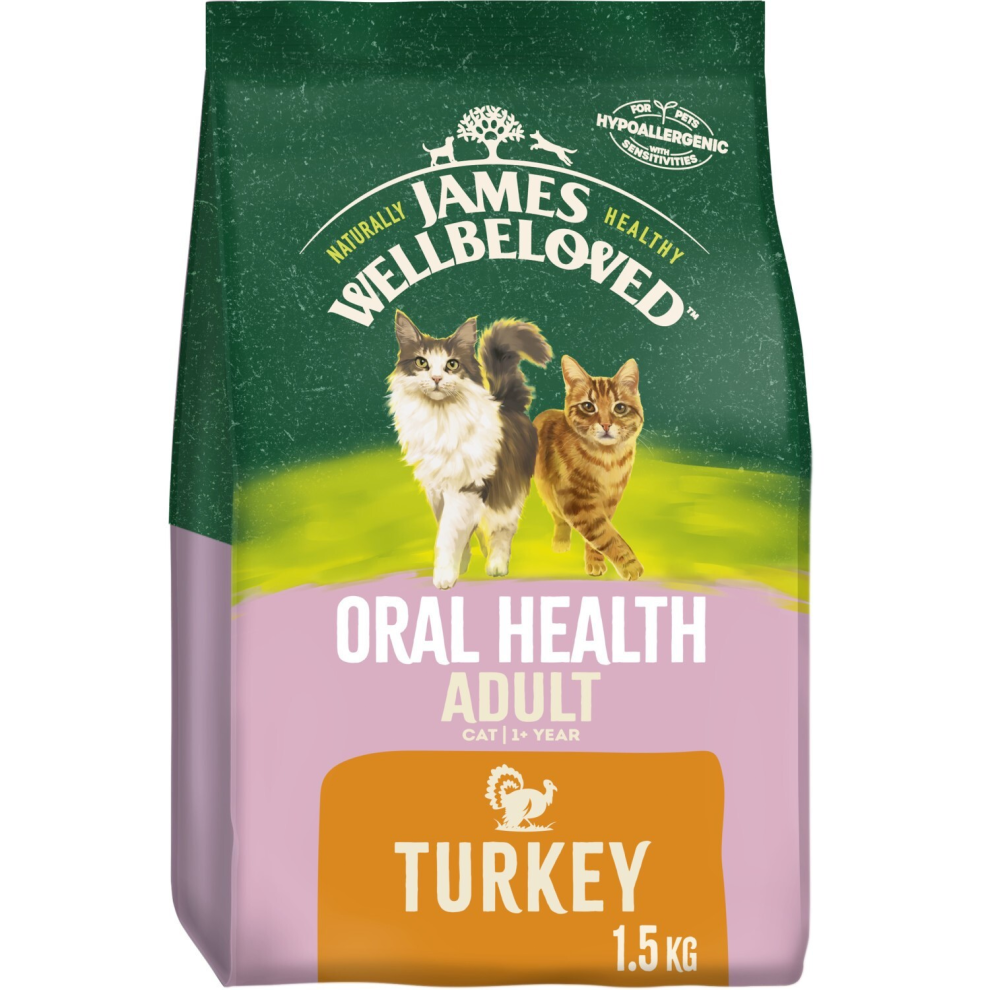 1.5kg James Wellbeloved Oral Health Natural Adult Complete Dry Cat Food Turkey