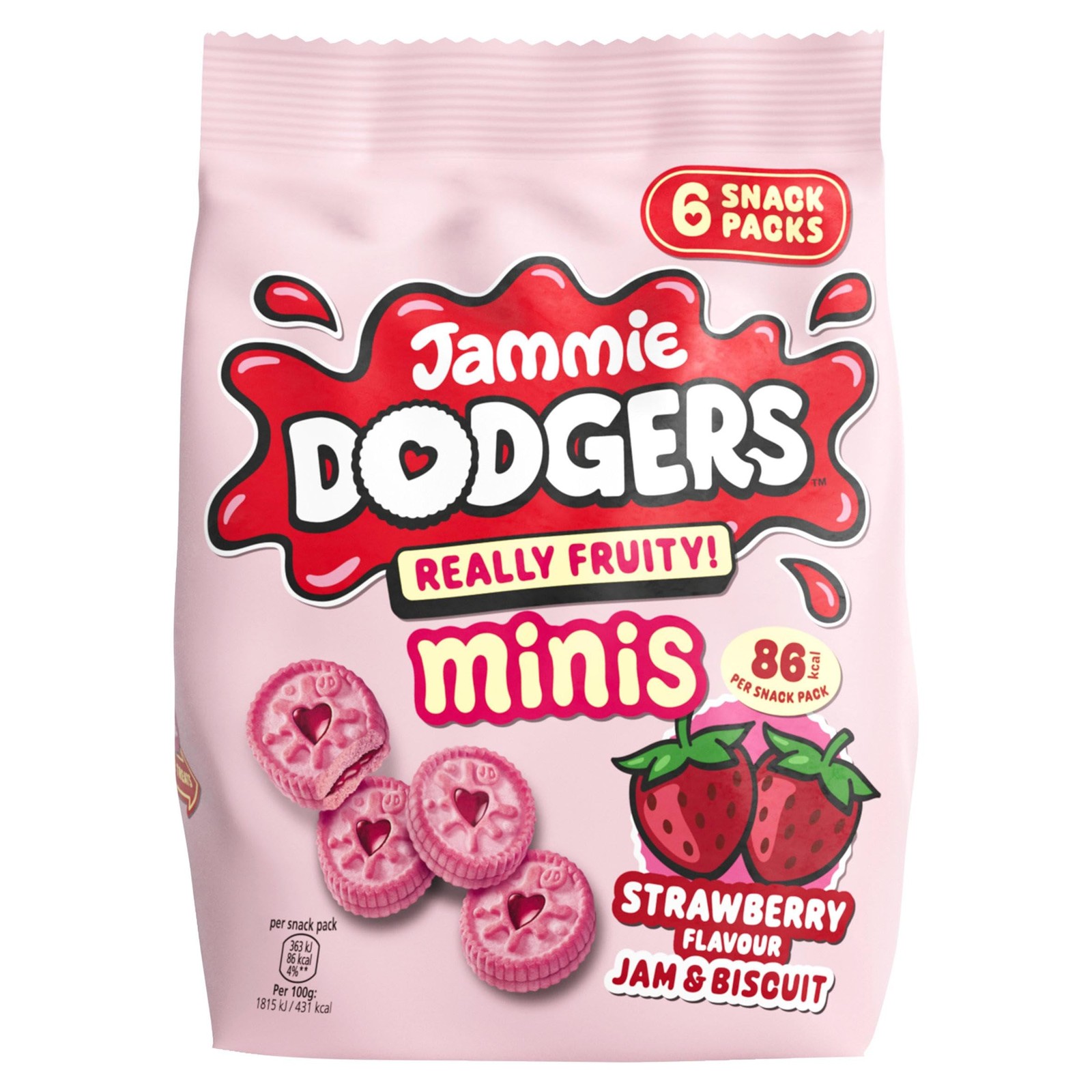 Jammie Dodgers Minis Strawberry Flavour Jam & Biscuit, 6 x 20g