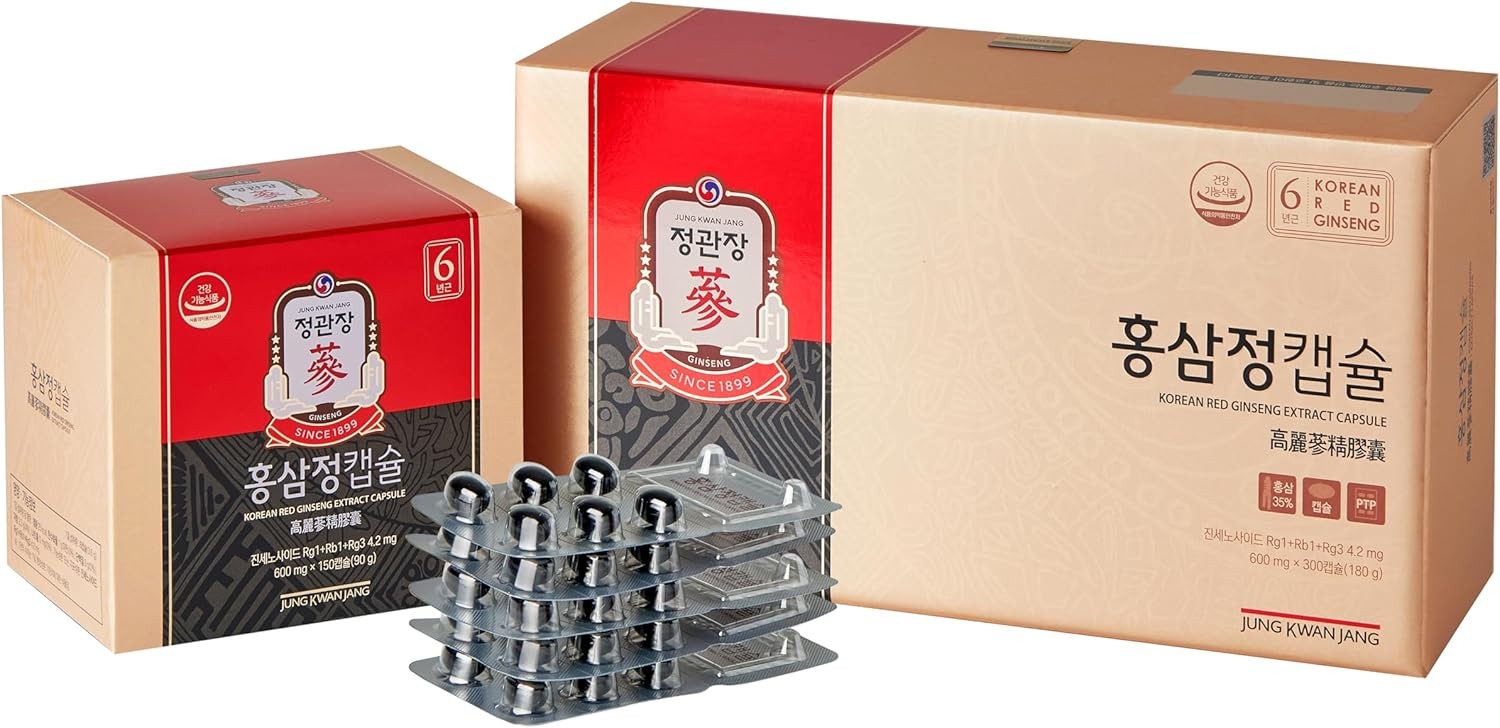 Jung Kwan Jang Korean Red Ginseng Extract Capsules Plus All-in-1 Focus Pills for Men & Women, Natural Energy Supplements,Circulation, Immune Support, Brain Booster - 30 Capsules CheongKwanJang