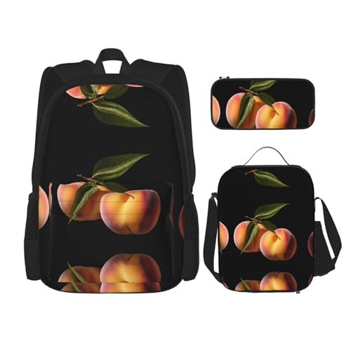 WZYCWB Big peach Backpack set (3-piece set) - student school bag + pencil case + lunch bag, large capacity backpack