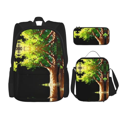 WZYCWB Big tree in the sun Backpack (3-piece set), large capacity backpack, student school bag, pencil case, lunch bag combination