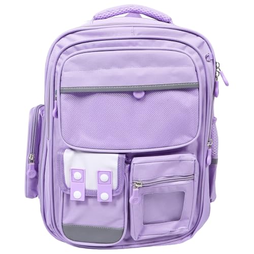 ifundom Large Purple School Backpack for, Big Capacity Elementary and Middle School Bookbag with Multiple Pockets, Sturdy and Teen Student Shoulder Bag for Daily Travel