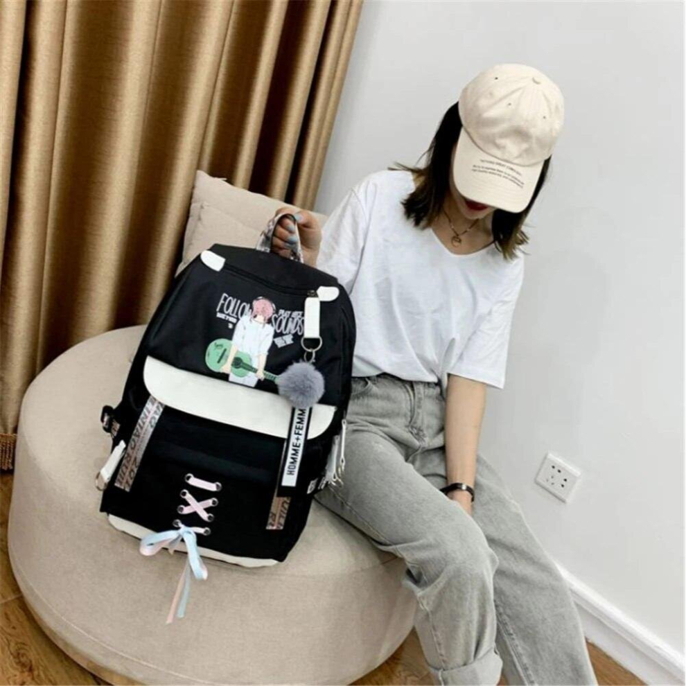 (Black-With pendant) Big Capacity Woman Backpack Large Nylon Girls Women Rucksack Casual Student Schoolbag College Book Bags