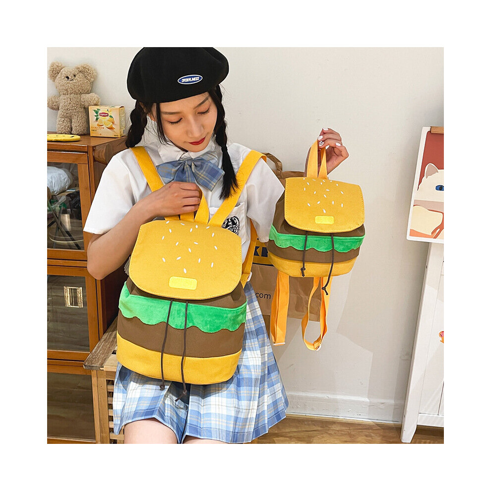 (canvas bag Beige-big) Creative Hamburger Backpack Women Large-capacity Canvas/Plush Drawstring Student School Bag Female Girl Backpack