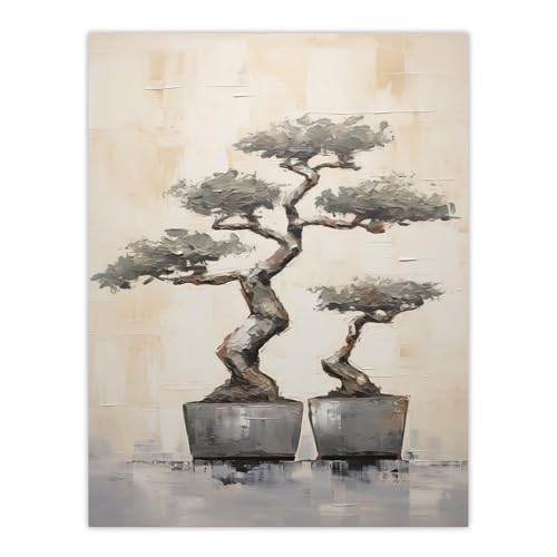Japan Bonsai Trees Oil Painting Pallet Knife Neutral Grey Tone Textured Artwork Unframed Wall Art Print Poster Home Decor Premium