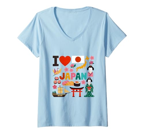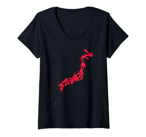 Women's Japanese National Flag Patriotic Japan Map Pride Heritage V-Neck T-Shirt
