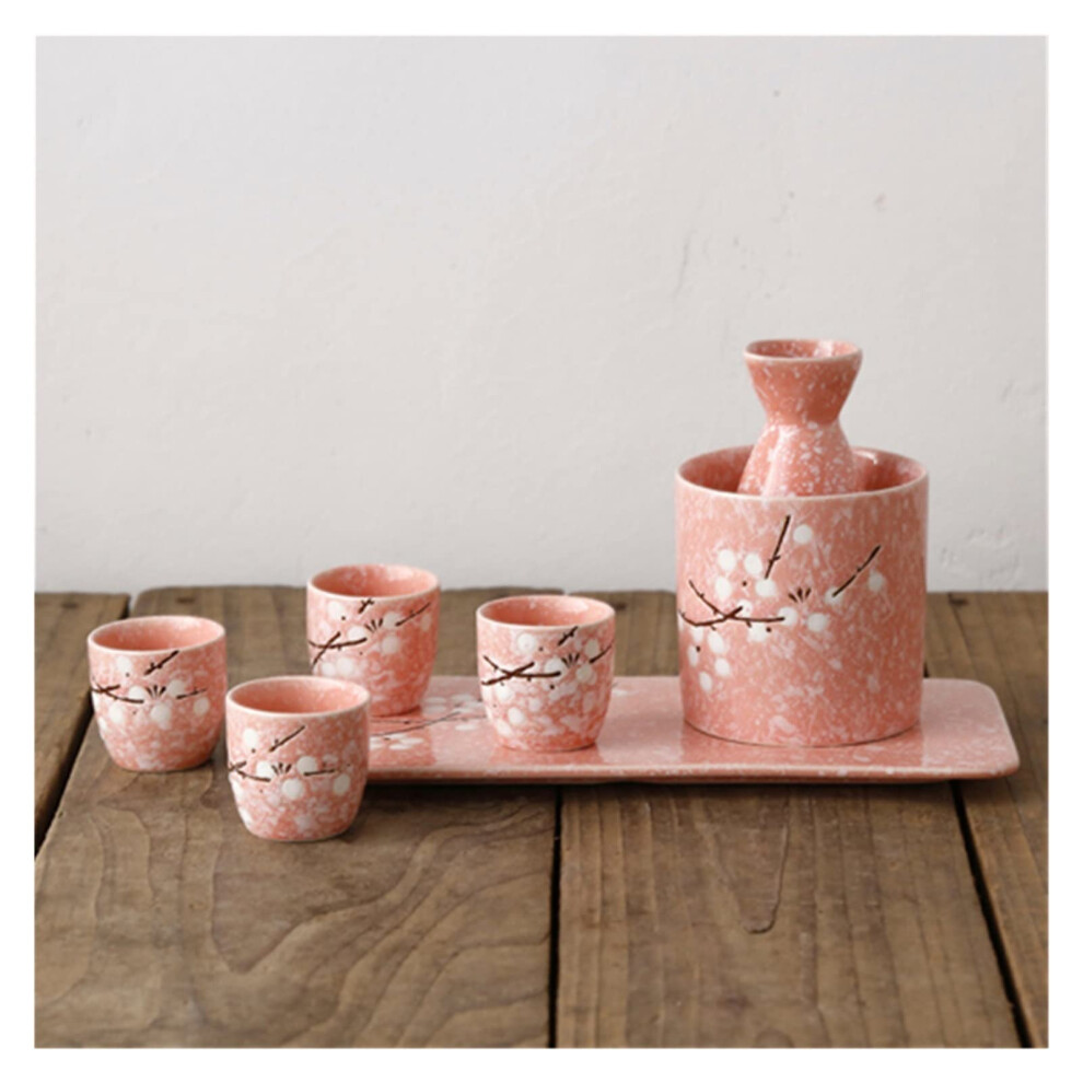 Fine Japanese Ceramic Wine Glass Handpainted Sake And Wine Warmer Plum Pattern Drinking Vessels Flagon Tray Plate