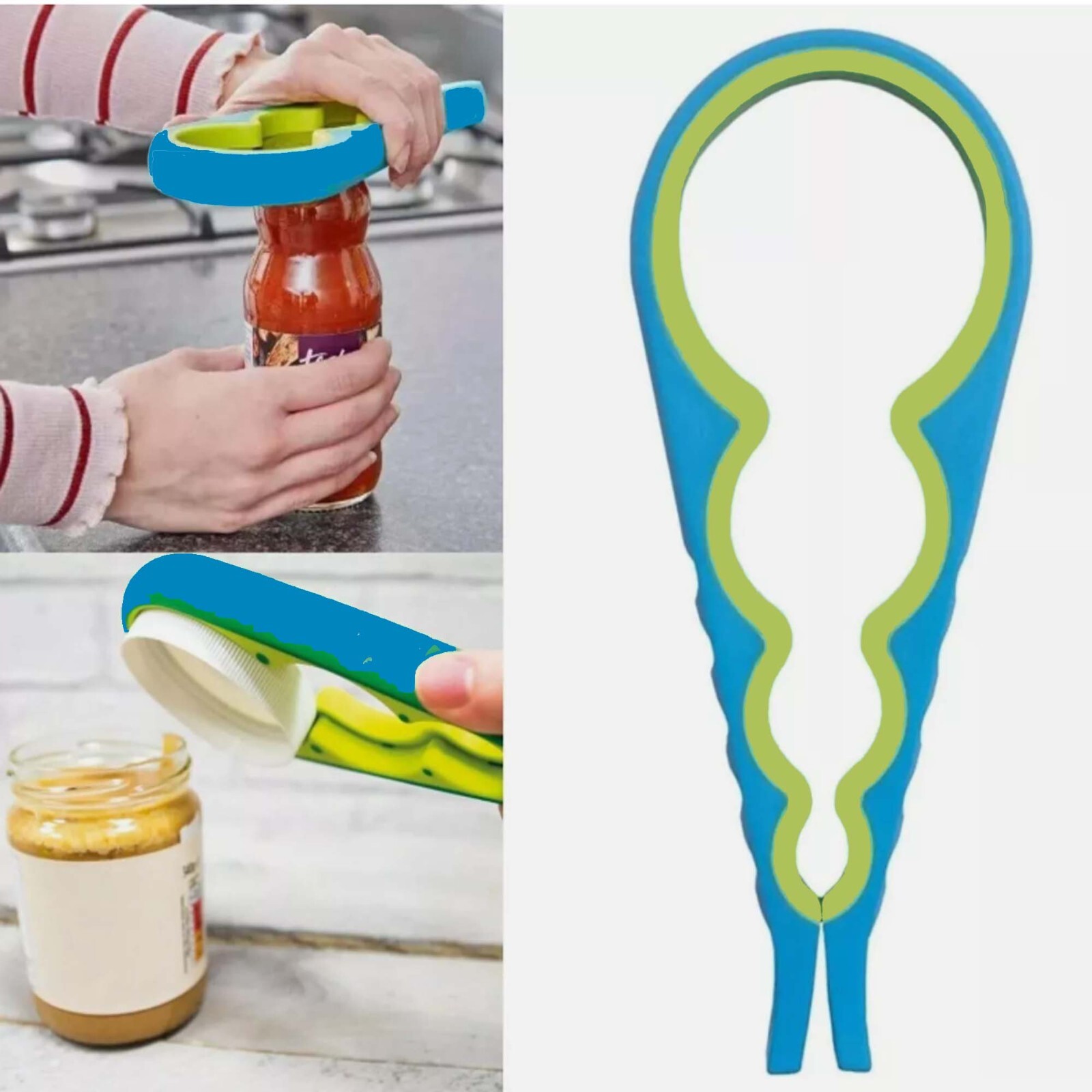 Jar Opener 4in1 Easy Grip Rubber Cap Lid Opening Bottle Opener Gripper Kitchen