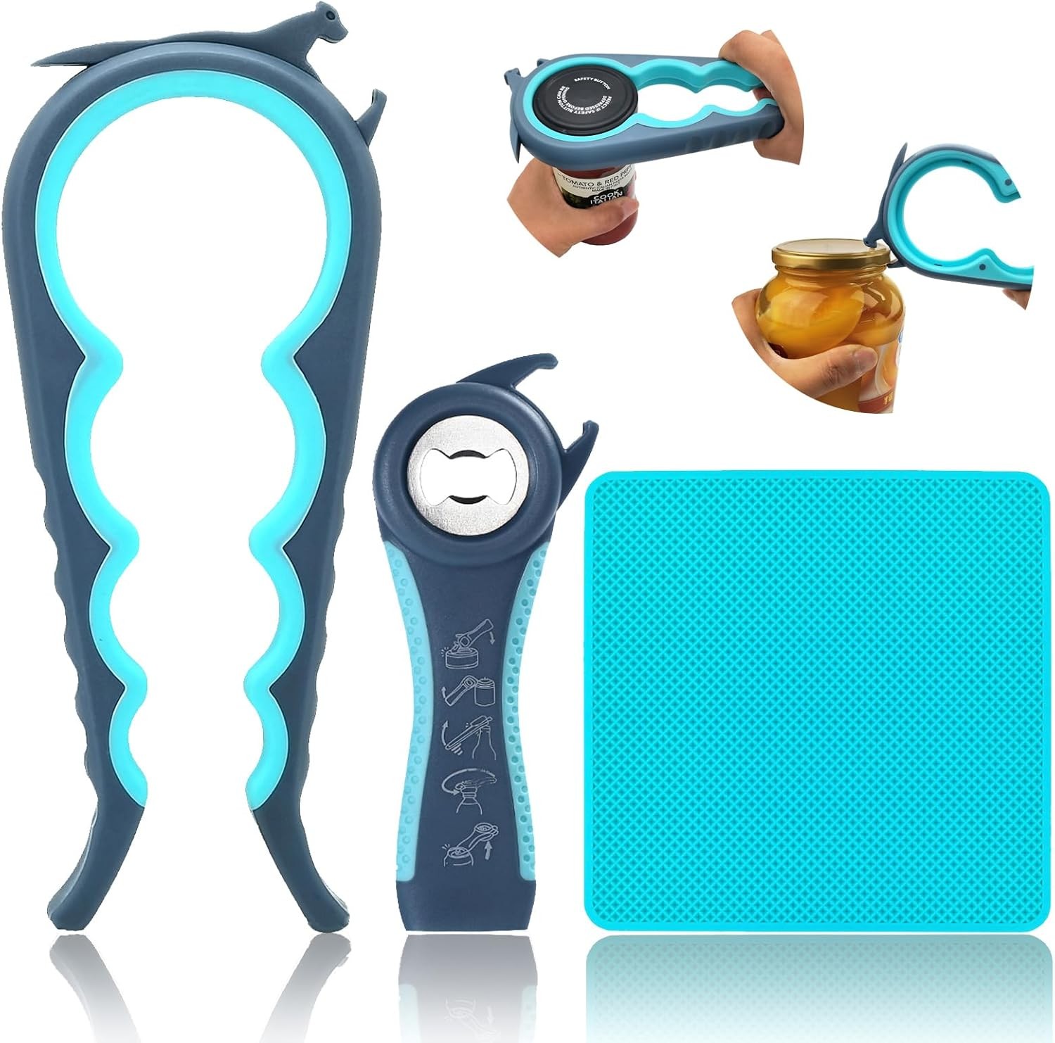 Easy Jar Opener Bottle Opener 4 in 1 Rubber Gripper Pad Opener for Kitchen Bar