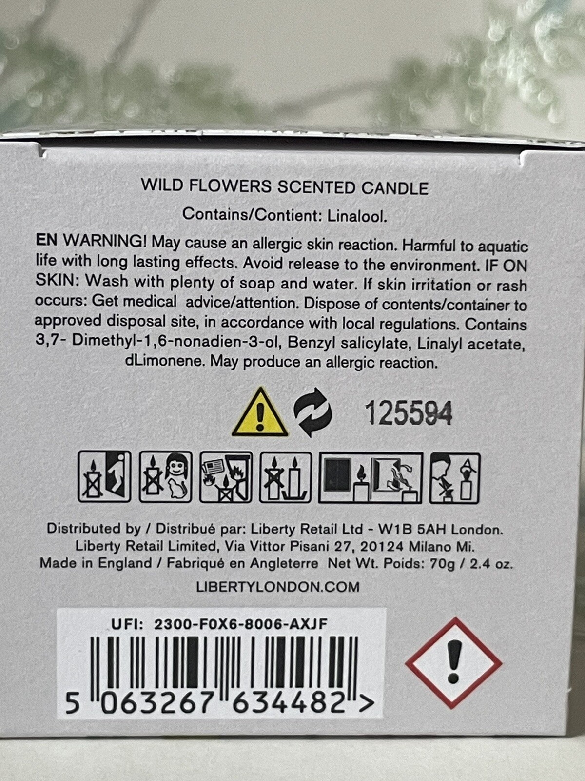 Liberty London Wild Flowers Wild Rose Jasmine Cedarwood Candle Votive Vegan 70g