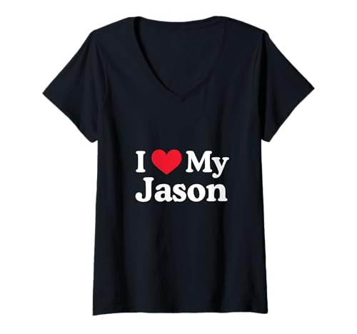 Women's I Love My Jason Heart Jason Love Jason V-Neck T-Shirt