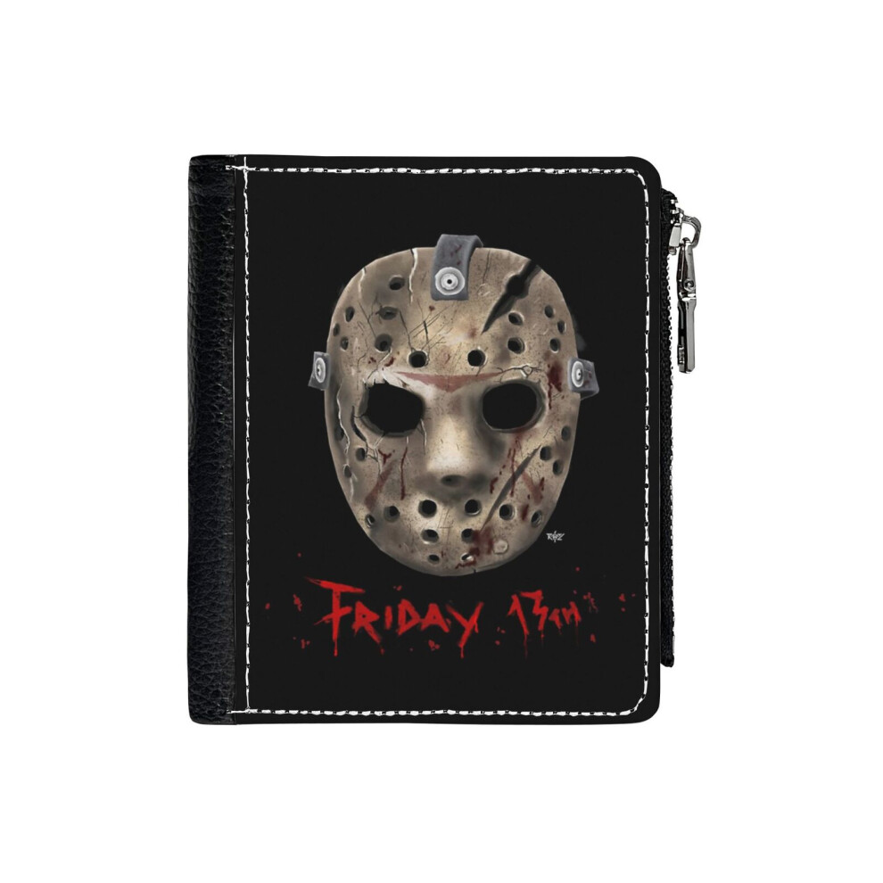 (Jason Friday 13 Th_67) PU Wallet Compact Bifold with Zipper & Multiple Card Coins Slots Black Stylish Durable Graphic Design Print for Men Women Kids