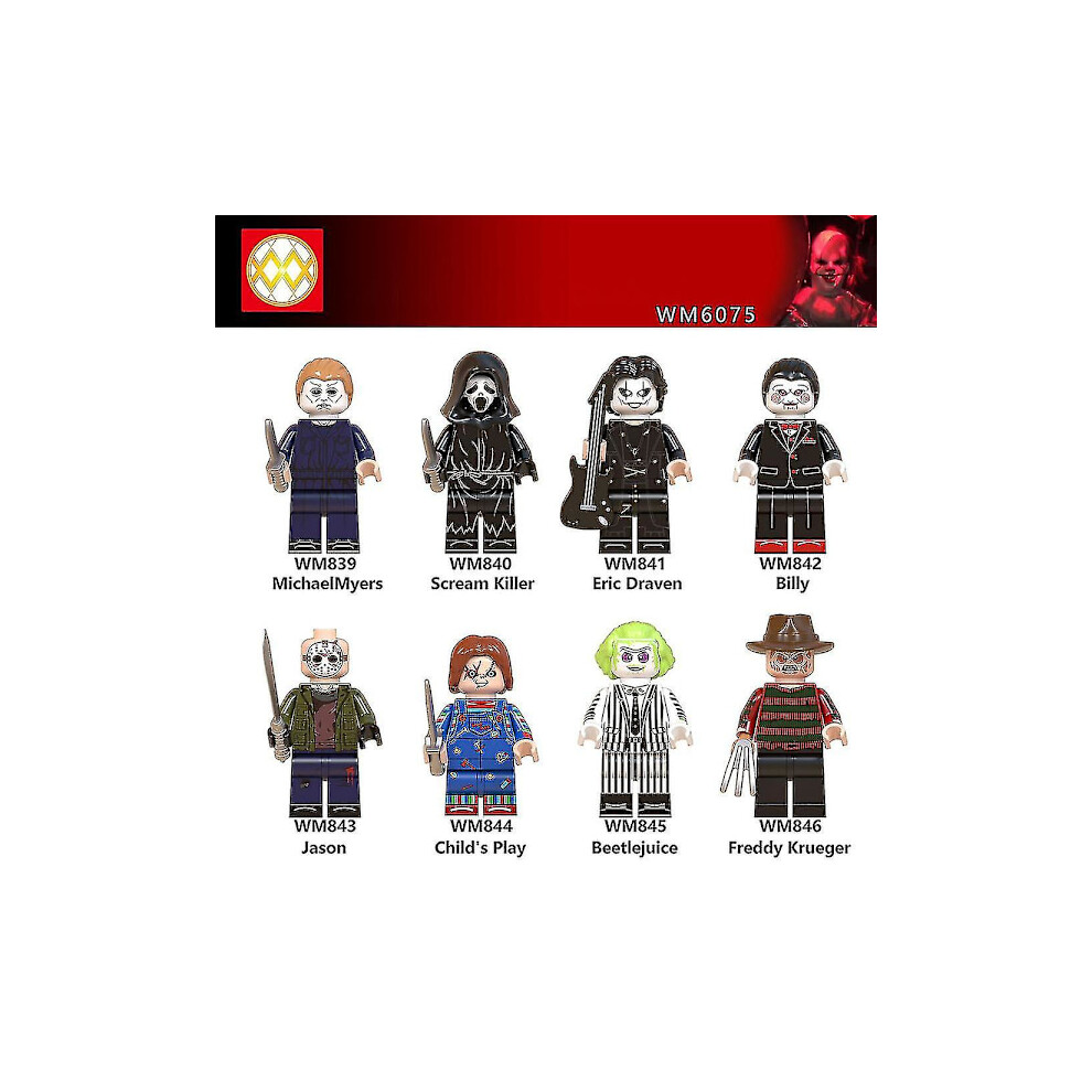 8pcs/set Hot Horror Movie Characters Mini Figures Billy Freddy Jason Building Blocks Minifigures Toys Kids Halloween Creative Gifts[GL]
